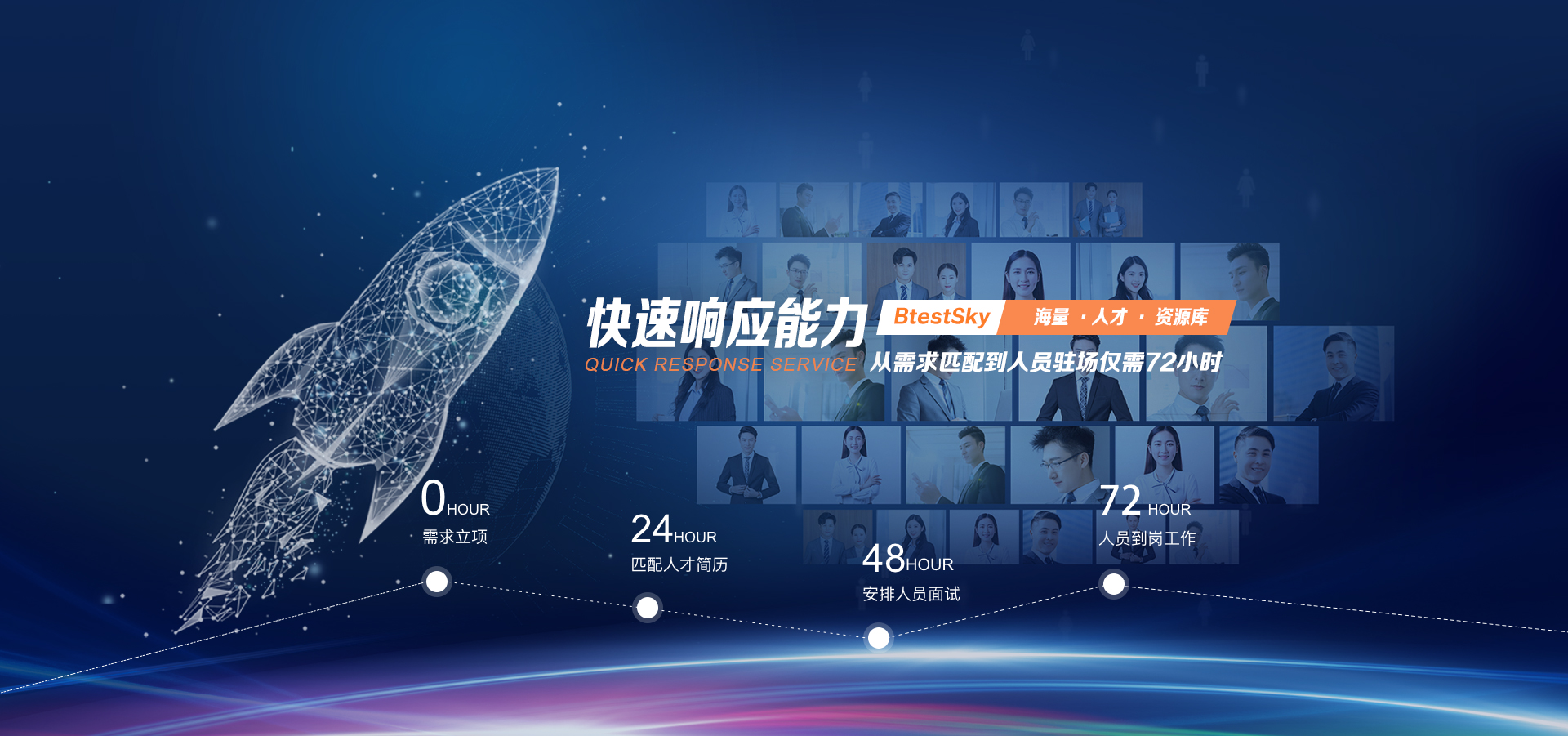 Talent outsourcing service? 多重嚴(yán)格把關(guān),從技術(shù)能力、溝通能力、學(xué)習(xí)能力、適應(yīng)能力,人員背景等多個(gè)方面進(jìn)行了嚴(yán)格篩選,使我們提供的人才更加貼合客戶需求; ? 招聘團(tuán)隊(duì)100人以上,24小時(shí)推薦簡(jiǎn)歷,36小時(shí)內(nèi)復(fù)試,72小時(shí)入職